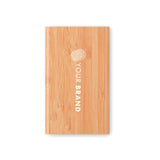 Power bank 4000 mAh in bamboo casing. Output current DC5V/V1A. Includes indicating light and USB cable with micro USB plug.