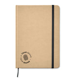 A5 notebook with a recycled PU cover. It has 160 lined pages (80 sheets) and can be closed with the elastic band.