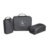 A modern and sustainable update to packing cubes using recycled fabric and webbing made from plastic bottles. Set of three packing cubes to keep you organised while travelling. Top grab handle on each packing cube for easy carrying convenience. Packing cubes nest together for easy storage when not in use. Large Cube: 15L 12H 3.5W. Medium Cube: 12.375L 5.5H 6W. Small Cube: 6.75L 11H 2.5W.