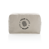A classic 285gsm recycled canvas toiletry for all your essentials. Keep your beauty essentials in one roomy compartment. The recycled canvas is undyed and used in its raw form, without chemicals from dyeing or bleaching.