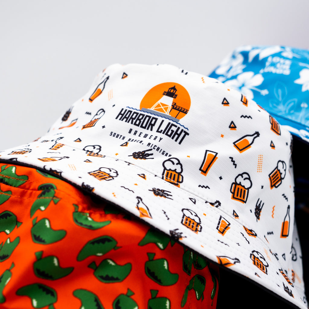 We keep some stock samples of bucket hats if you would like to check the quality and feel. These bucket hats could be any design depending on what's in stock at the moment.