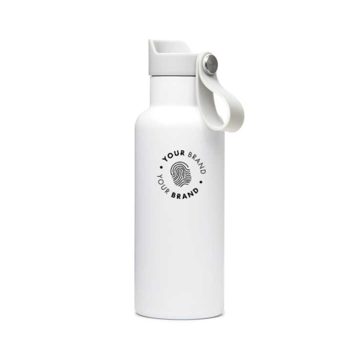 This recycled stainless steel vacuum bottle features a modern design that combines functionality with style. With a generous capacity of 880 ML, it's perfect for all-day hydration on your daily adventures. The bottle includes a functional handle for easy carrying, and the lid offers two beverage intake options. The double-walled insulation keeps your drink cold for up to 16 hours and hot for up to 3 hours, ensuring you stay refreshed throughout your journey. Spillproof. Not dishwasher or microwave safe, only handwash.